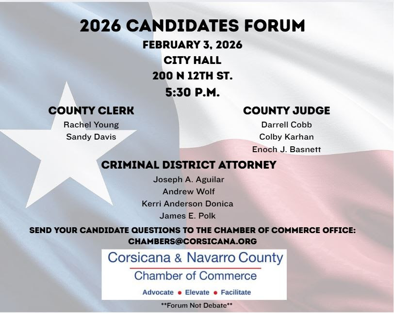 Candidate Contact Information and Vote Center Locations: POLLING LOCATIONS FOR MARCH 3, 2026: YMCA Rhoades Optimist Room400 Oaklawn Drive, Corsicana Church of Jesus Christ of Latter Day Saints3800 Emhouse Road, Corsicana Rice City Hall203 E. Calhoun Street, Rice Chatfield Community Center4808 FM Road 1603, Chatfield Martin Luther King Center1114 East Sixth Avenue, Corsicana Bears' Den802 South 2nd Street, Corsicana Kerens ISD Administration Building200 Bobcat Lane, Kerens Eureka United Methodist Church8644 South Highway 287, Corsicana Mildred Baptist Church Gymnasium5502 South Highway 287, Corsicana Navarro College Cook Center3200 West Seventh Avenue, Corsicana Navarro County Courthouse Annex601 North 13th Street, Corsicana Dawson Volunteer […]